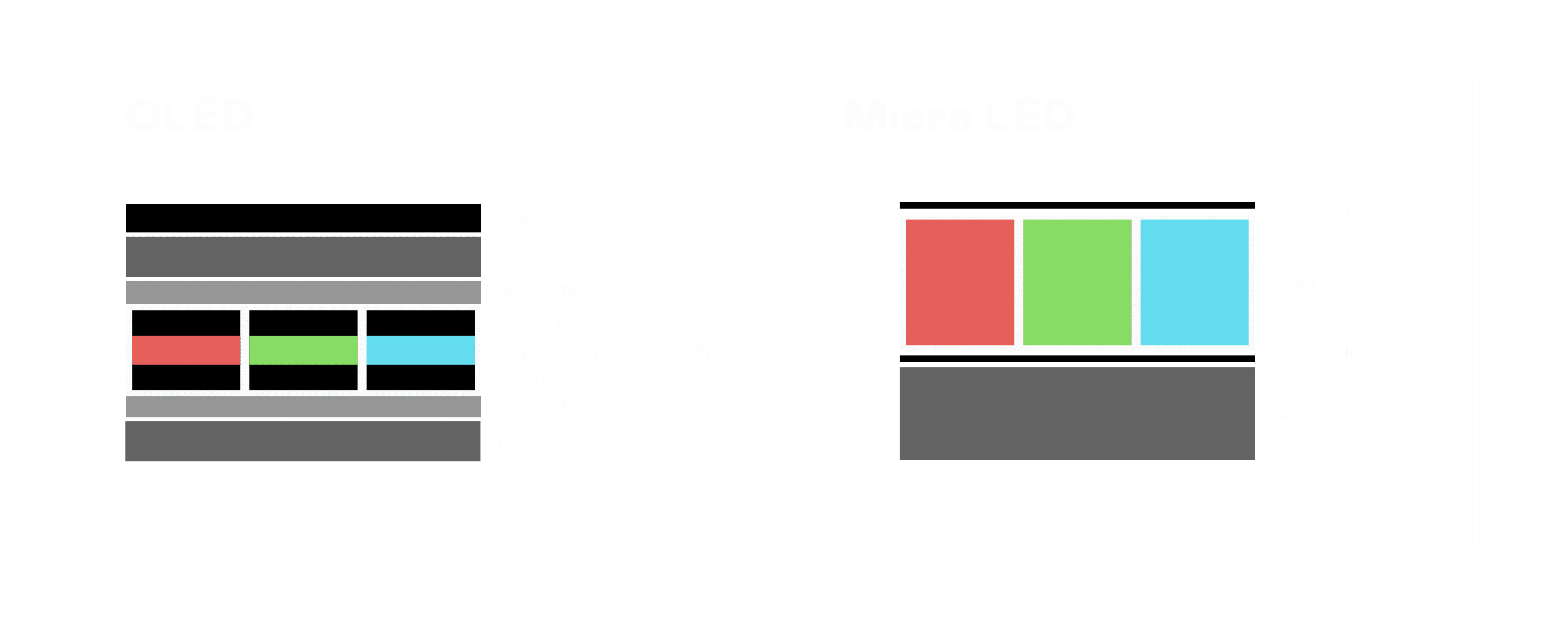 以 LED 做为显示画素,,,可让 LED 的发光效率发挥到极致,,从而让显示器具备优异的亮度表现,,,不论是在户外或室内,,,,均具备出众的显示效果。。同时,,,与使用有机材料的 OLED 相比,,,,LED 具备更稳定、、寿命更长的特性,,不仅不会有画面烙印问题,,,,而且更不容易出现故障、、、坏点。。。。