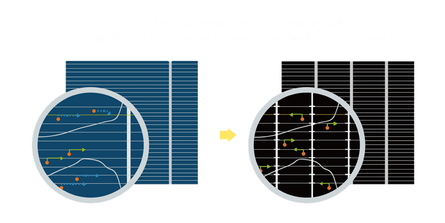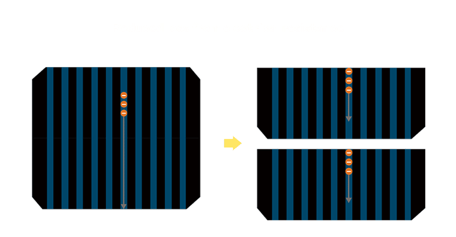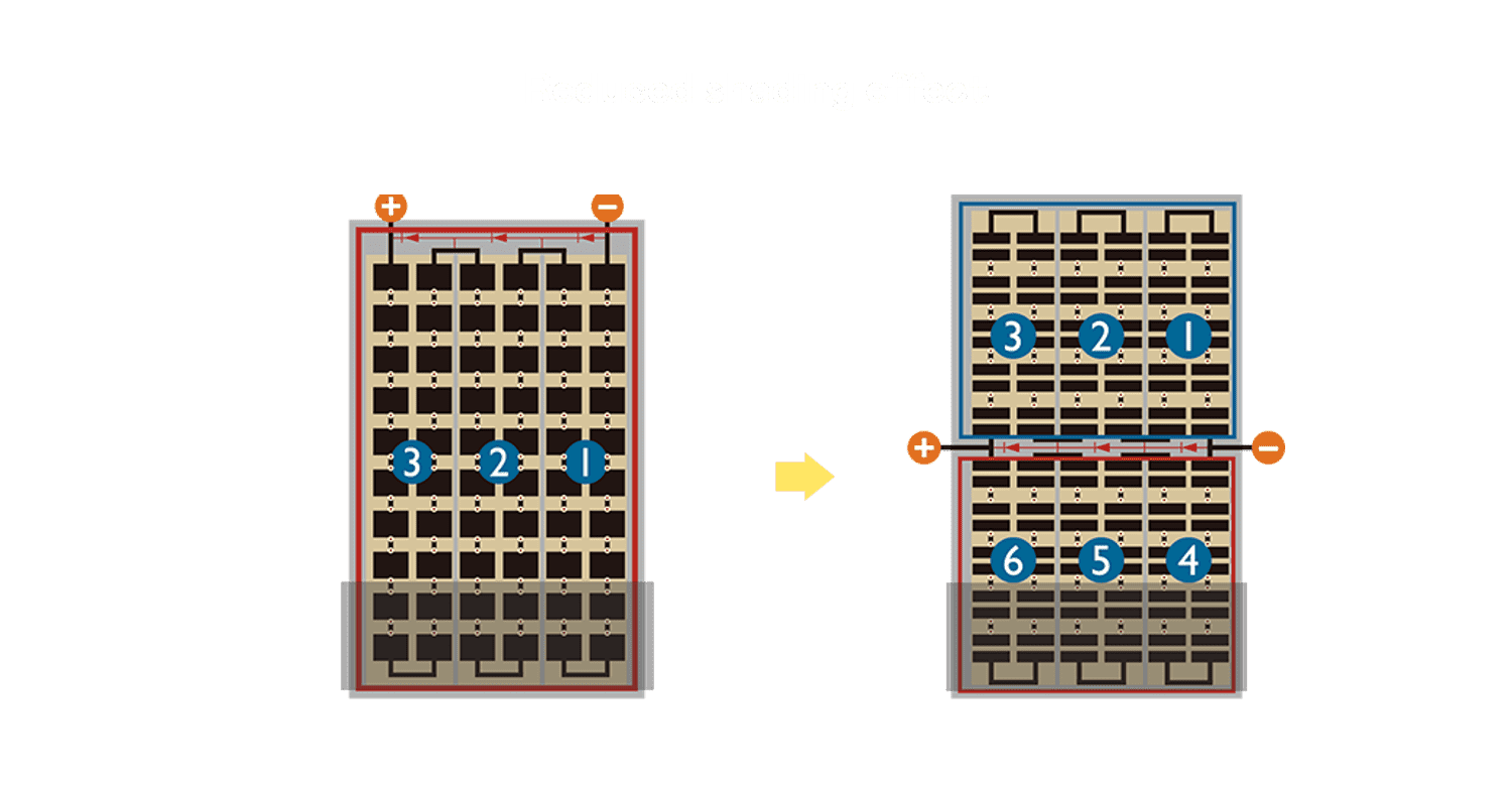 - 结合半切电池,,,,降低遮阴影响、、、、提升模组抗隐裂能力、、、、并减少电阻损耗,,,,进一步提升模组发电效能。。。
